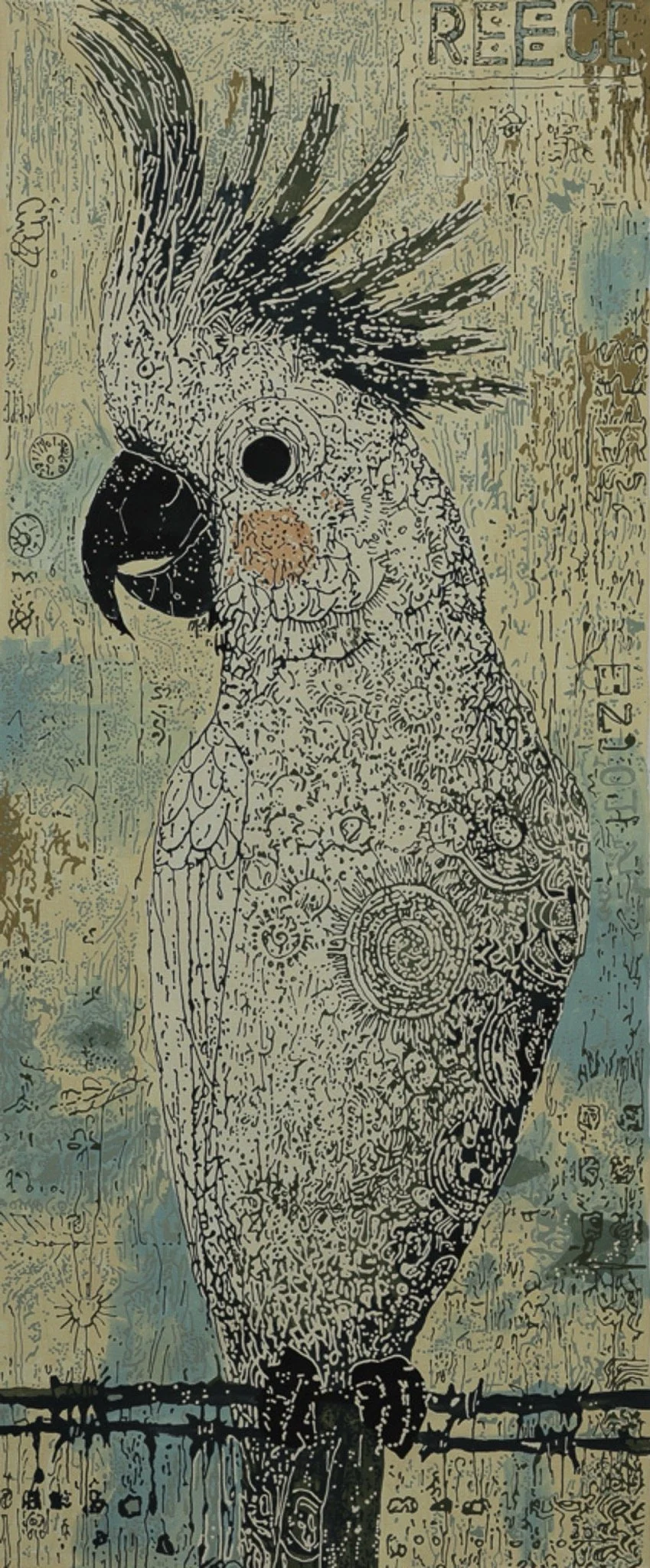 I chose the sulphur-crested cockatoo as the subject of these works because they are a familiar presence, both here and in my own experience growing up. They are intelligent, noisy, and deeply connected to place... part of the life of Country.