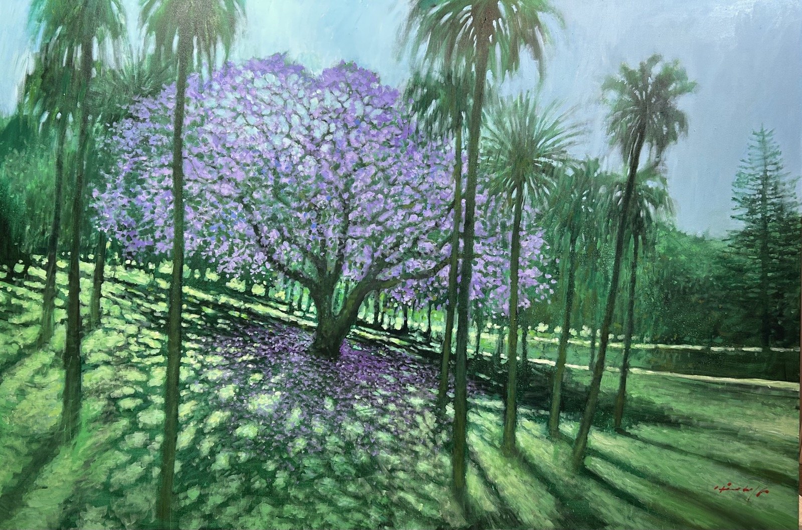 “These palms always appear to me like sentinels and in October each year they seem to be protecting that gem of a Jacaranda tree. The palms are probably more than 100 years old. This location on the slope coming down from the former golf clubhouse is probably where the main Olympic stadium is proposed to be constructed. Unless this tragedy is stopped, these sentinels will no longer stand at attention guarding this 150 year-old park…and the lavender petals and this jacaranda tree will bloom no more.”