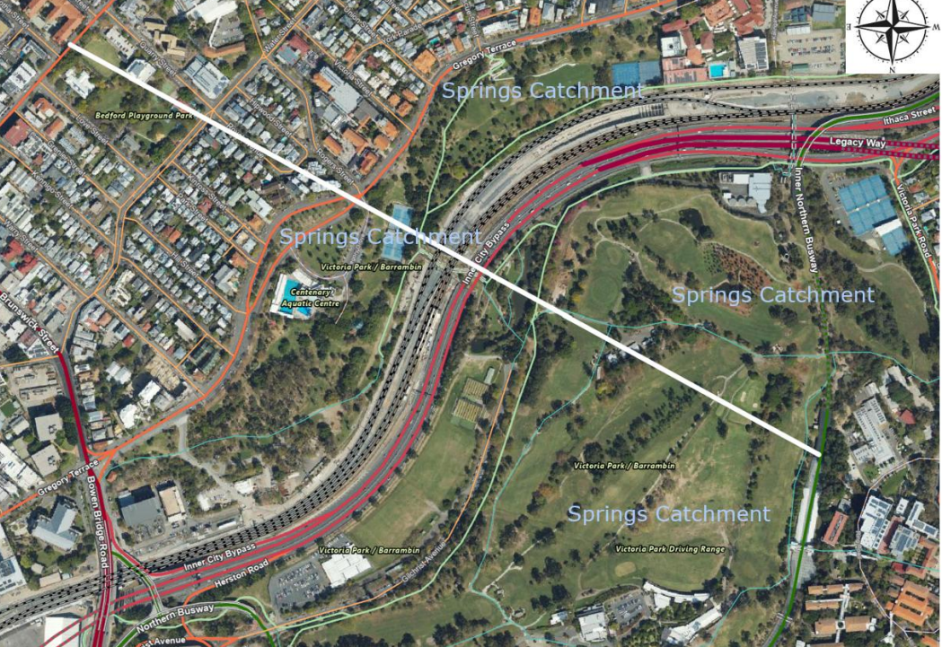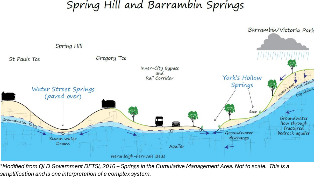 At Victoria Park Barrambin, the ENTIRE northern (Herston) and southern (Spring Hill) sides of the park act as a catchment for the Barrambin Springs.